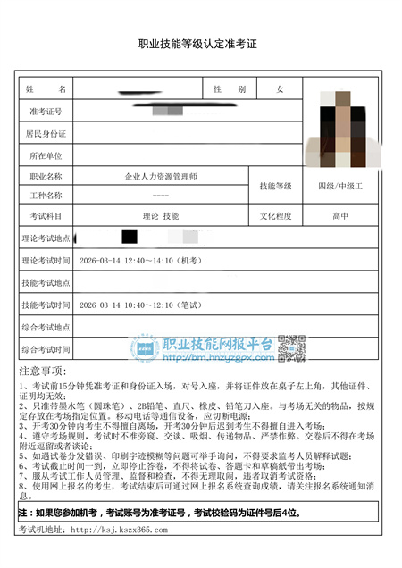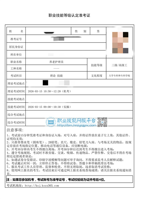 【准考证领取】2026年3月14、15日企业人力资源管理师、健康管理师、保育师、养老护理员、汽车维修工、营养师(公共营养师)、婴幼儿发展引导员(育婴员)、评茶师职业技能等级考试准考证领取通知及流程