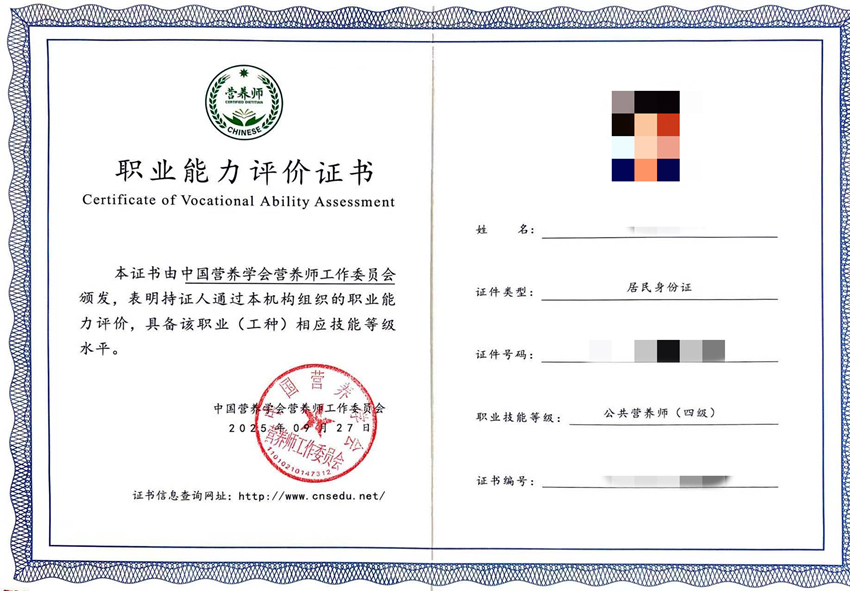 【证书领取】中国营养学会:2025年9月27日批次公共营养师职业能力全国统一考试证书领取通知