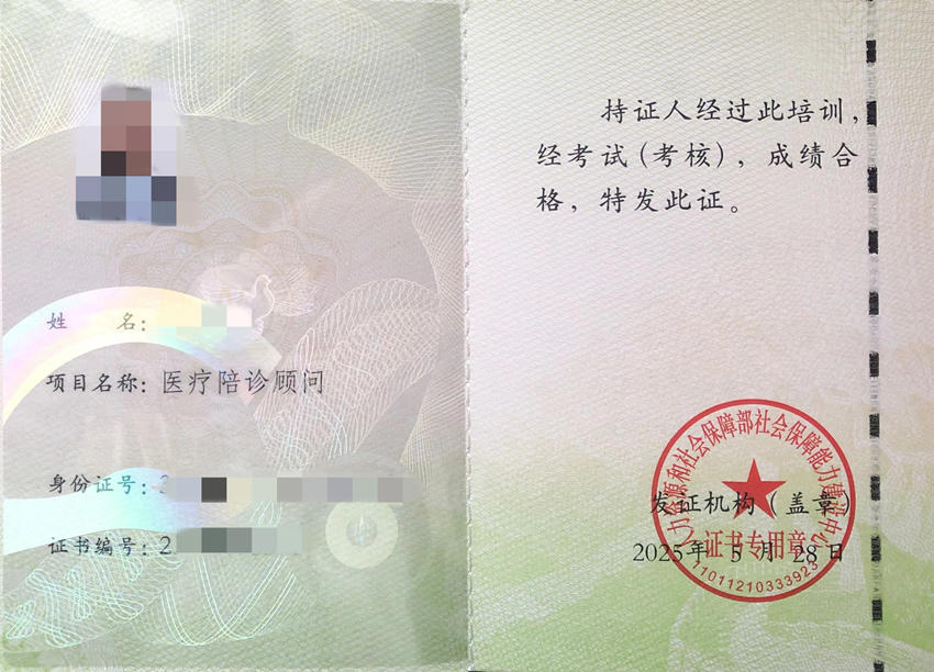 【证书领取】人社部能力建设中心:2025年5月医疗陪诊顾问(陪诊师)、体态管理顾问、儿童发育指导、国防教育辅导、心理卫生建设、生殖健康咨询、中医健康管理等职业技能培训证书领取通知