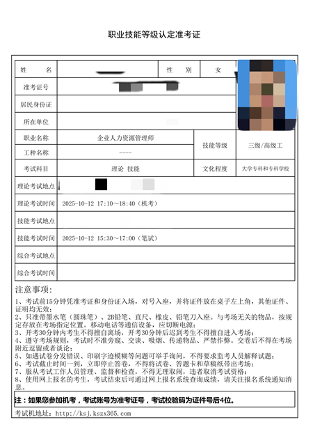 【准考证领取】2025年10月12日企业人力资源管理师、人工智能训练师、老年人能力评估师、计算机维修工、健康管理师、保育师、养老护理员、汽车维修工、营养师(公共营养师)、婴幼儿发展引导员(育婴员)、评茶员、无人机驾驶员、创业指导师、钳工、电工、电子商务师、家政服务员、保健按摩师、互联网营销师、物流服务师、劳动关系协调员等职业技能等级考试准考证领取通知及流程