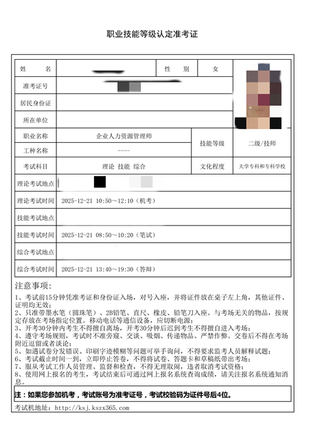 【准考证领取】2025年12月20、21日企业人力资源管理师、人工智能训练师、老年人能力评估师、计算机维修工、健康管理师、保育师、养老护理员、汽车维修工、营养师(公共营养师)、婴幼儿发展引导员(育婴员)、评茶员、无人机驾驶员、创业指导师、钳工、电工、电子商务师、家政服务员、保健按摩师、互联网营销师、物流服务师、劳动关系协调员等职业技能等级考试准考证领取通知及流程